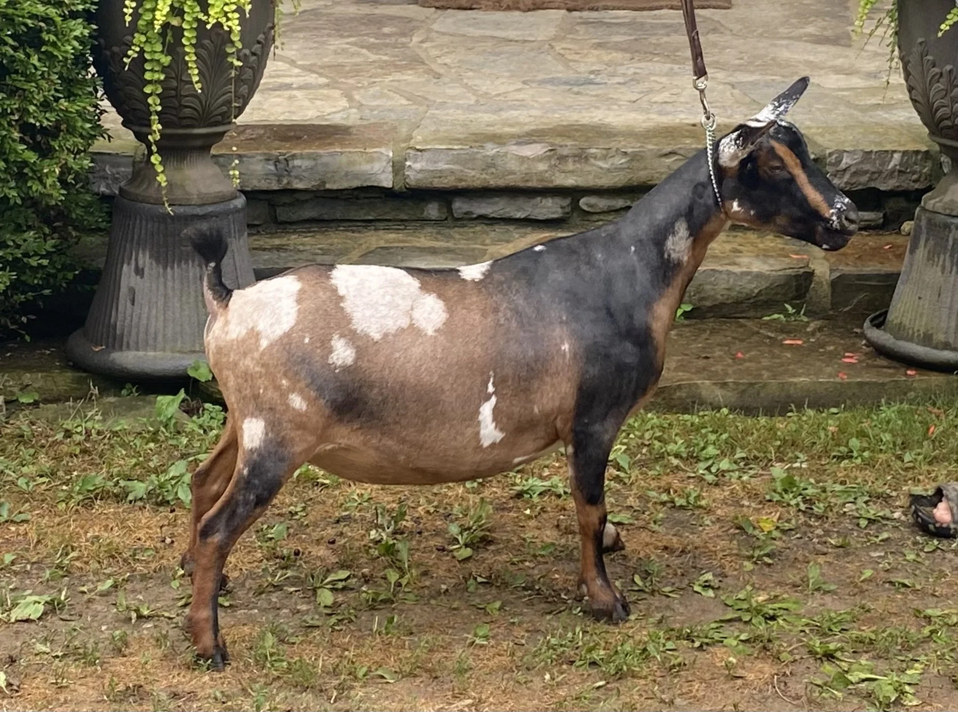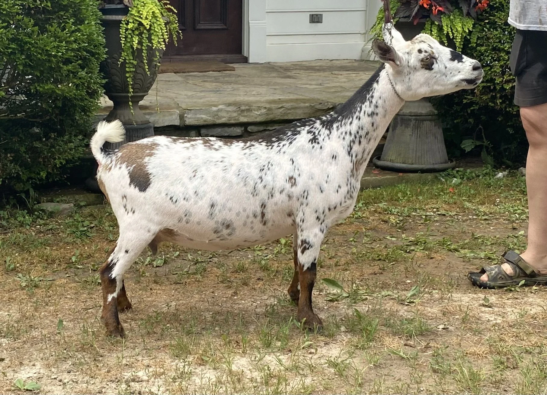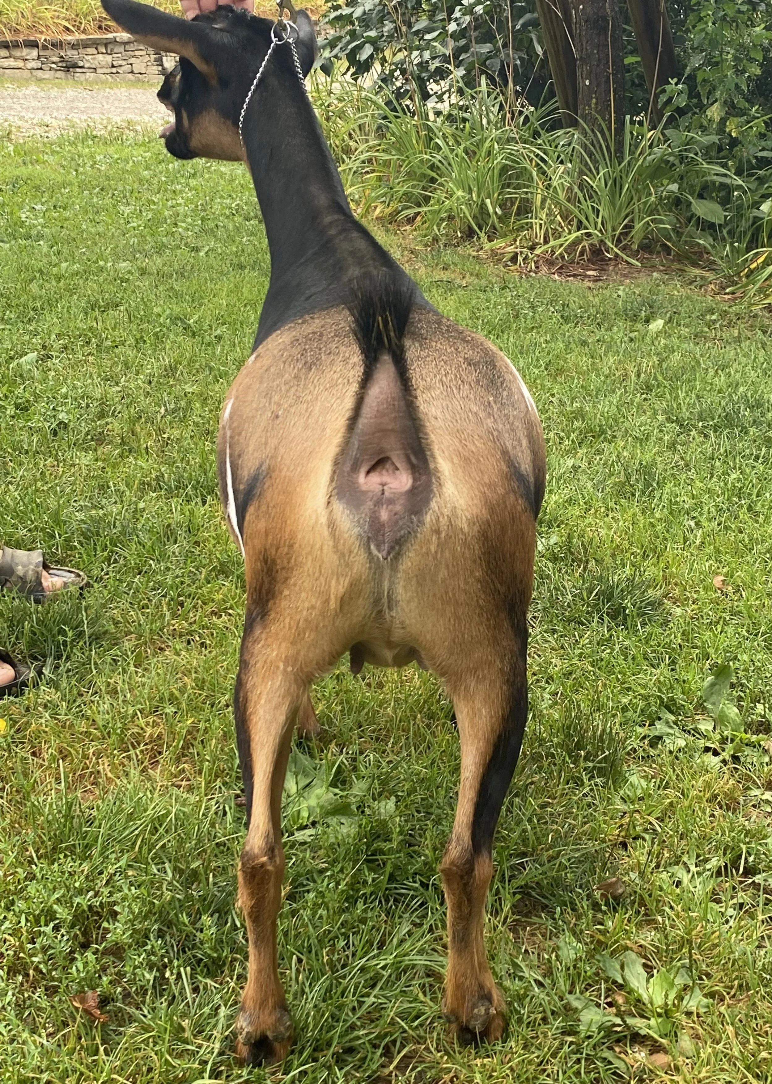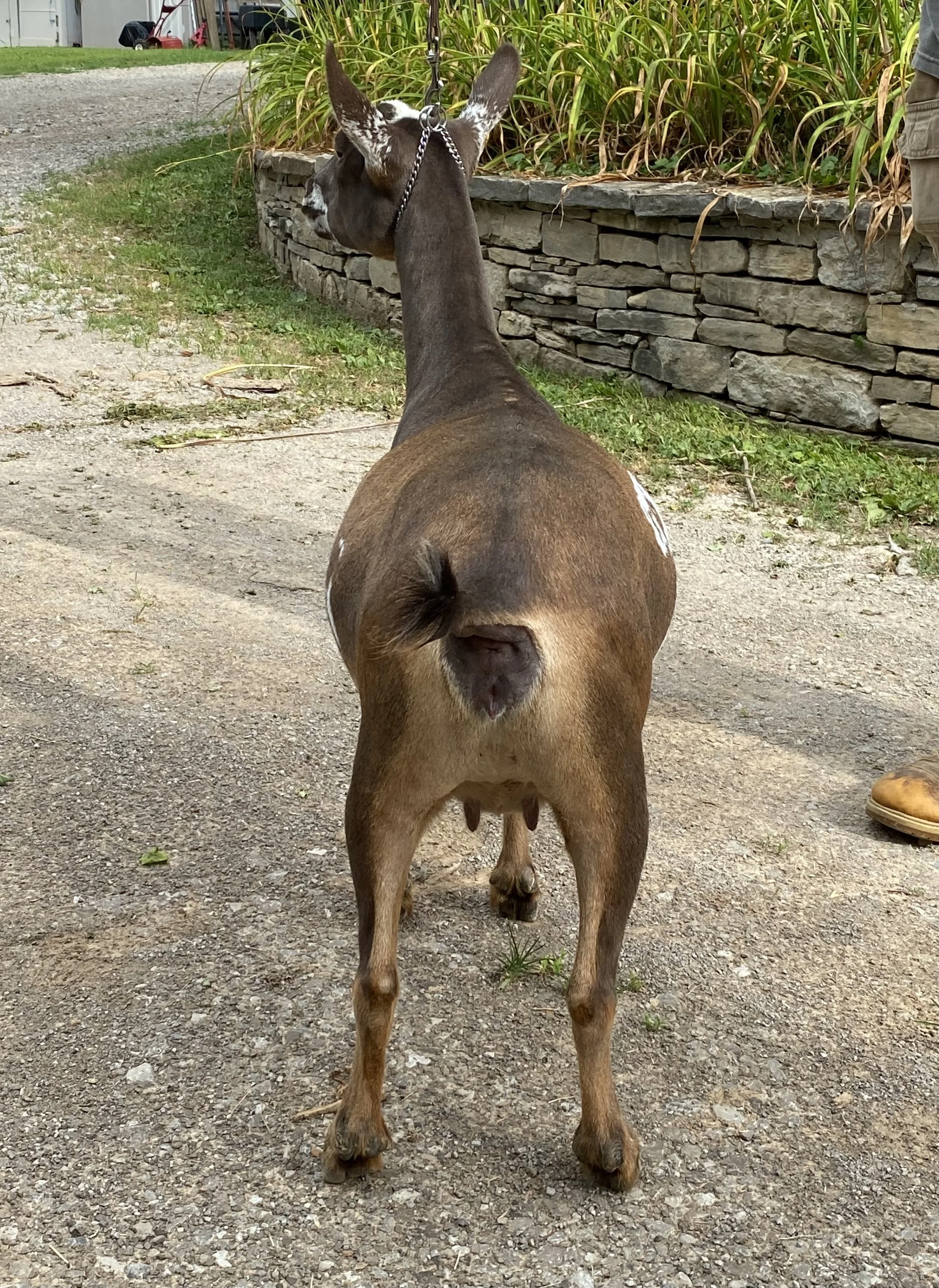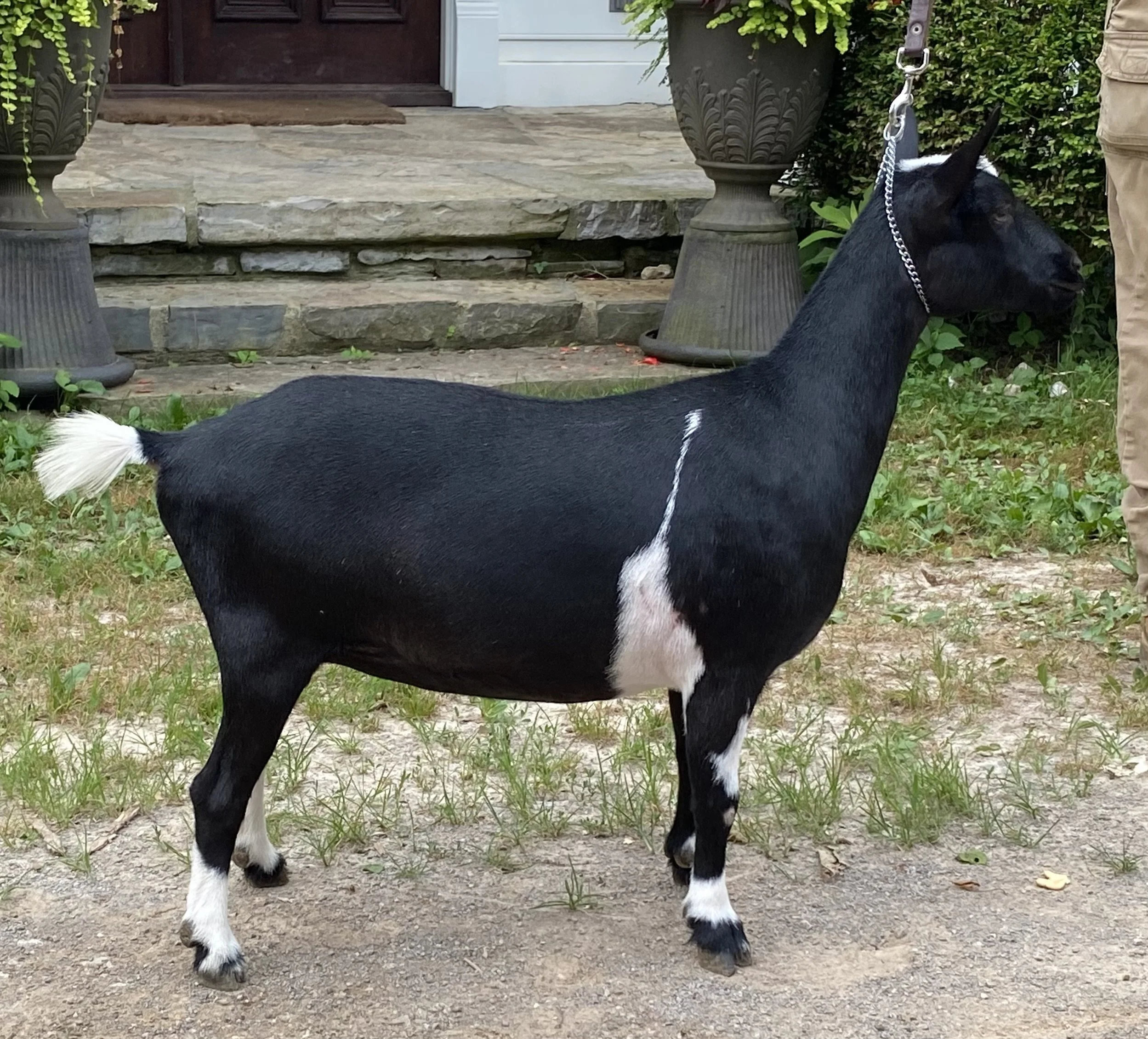 (ST Ex Macabbees +*B +*S VEV89 whose dam is: SGCH Woodbridge Farm Peridot 3*M *DAR EEEE91, 3x GCH, 2x BOB,2017-18 ADGA Top 10 (305), 2015-2018 AGS Top 10 305, 6.9# Test high, Milked 1480#, 113# BF x Dam’s Dam SG/Elite ST O Tizrah 2*M 2*DAR VVEE90 ,(SG/Elite Oliver ++*B ++*S 90Ex, VEV88 x LTE Calista *M DAR VEEV88, 1xRsCH), ADGA Elite 8x, Milk Test High: 6.2# BF High: 11.7% , 1517# for 305, Lifetime: 8500+#)
