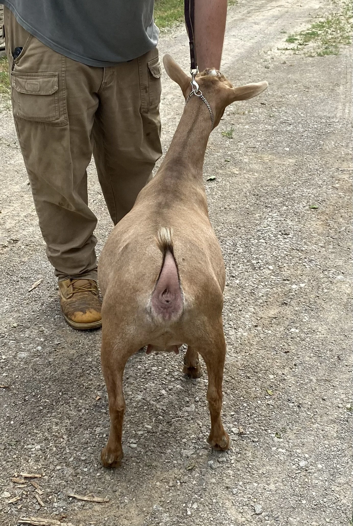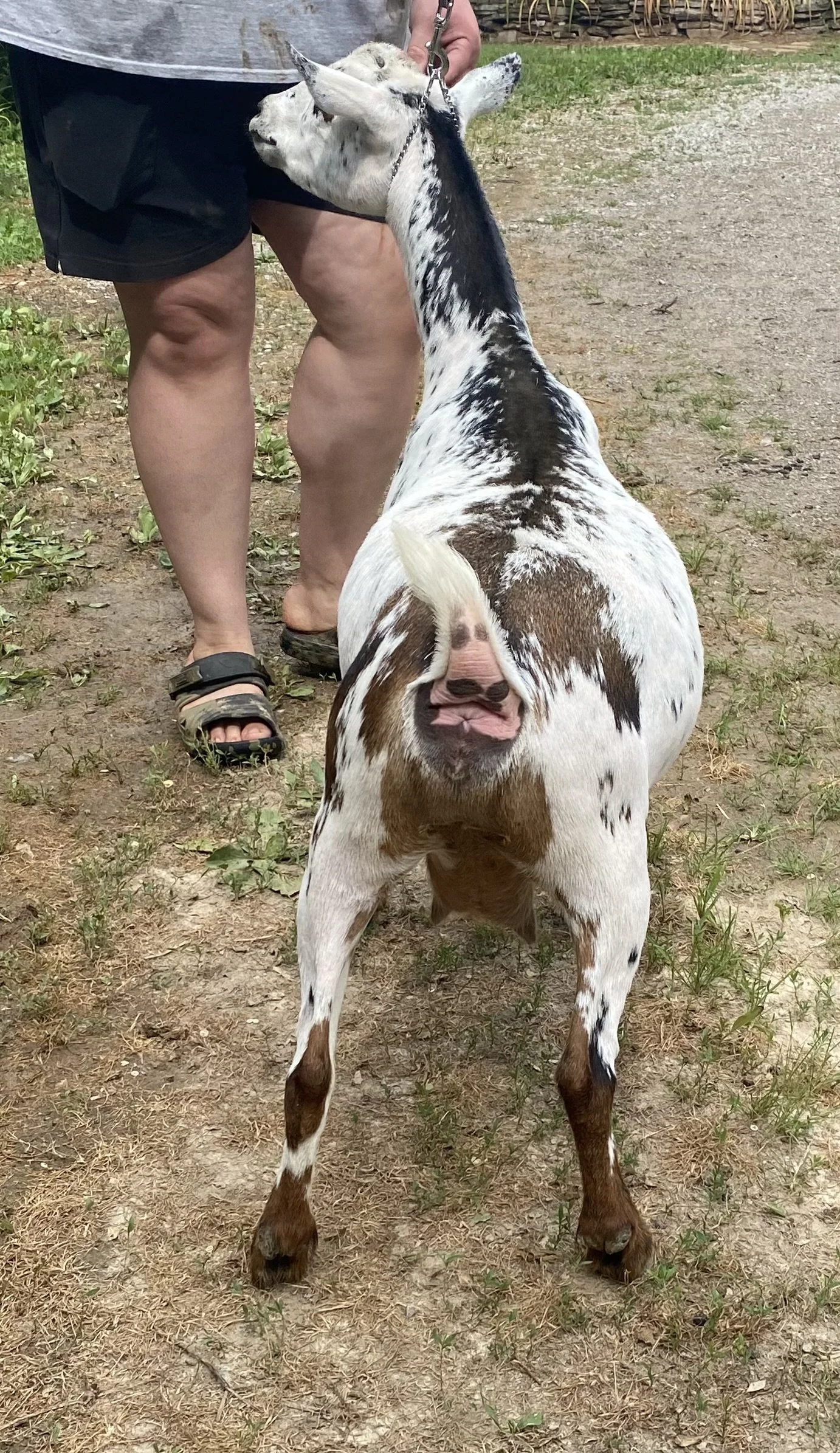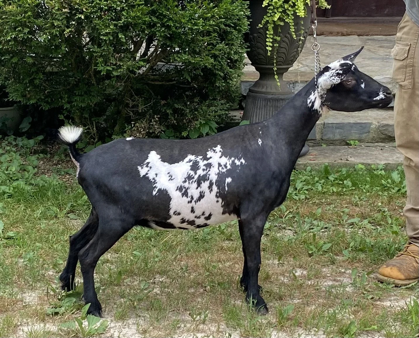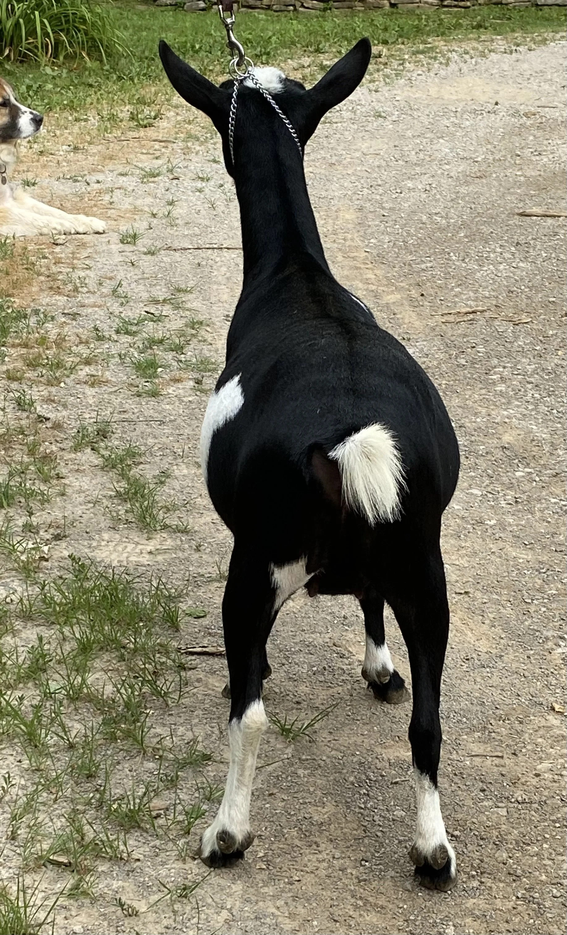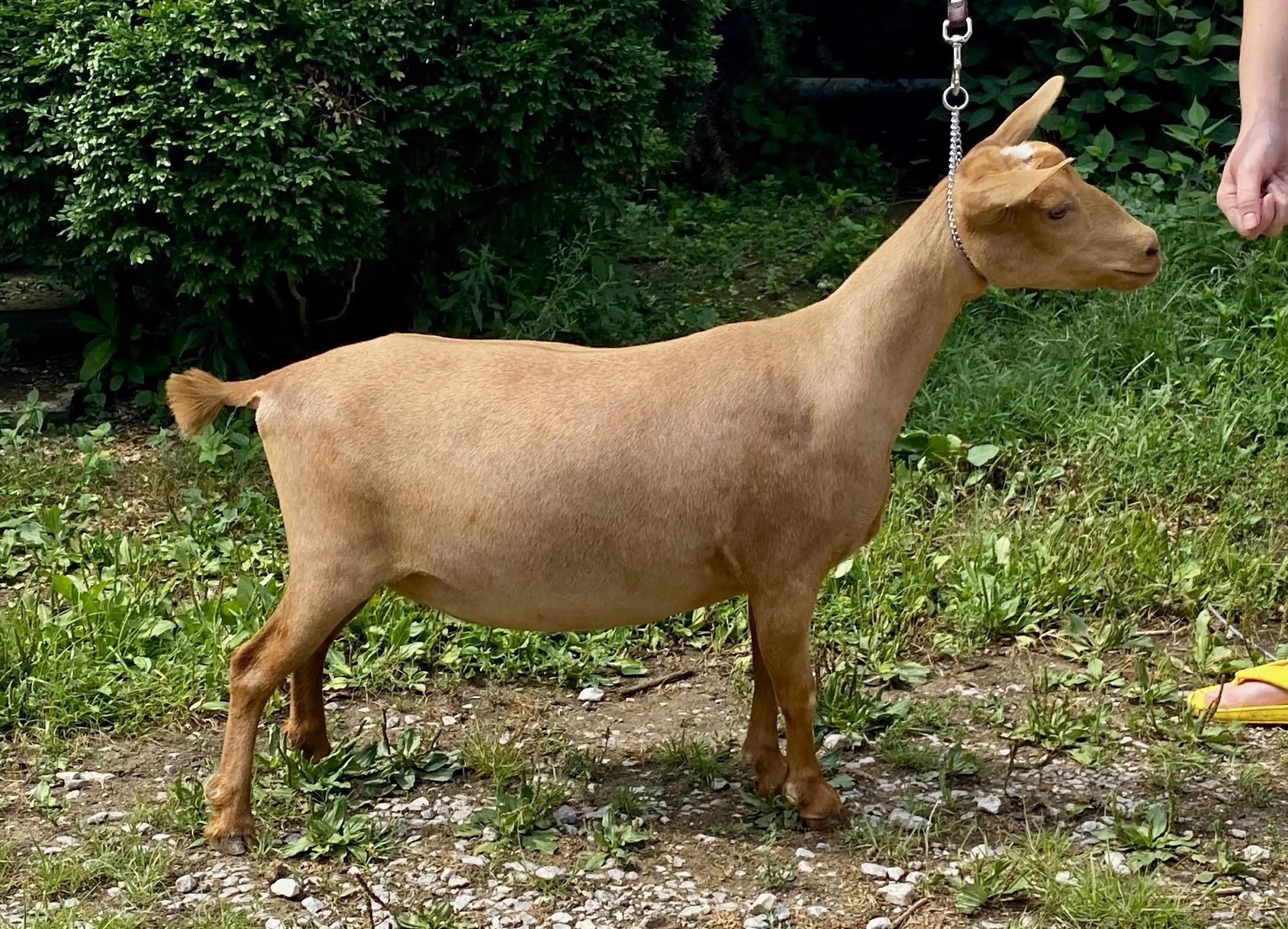 (ST Ex Macabbees +*B +*S VEV89 whose dam is: SGCH Woodbridge Farm Peridot 3*M *DAR EEEE91, 3x GCH, 2x BOB,2017-18 ADGA Top 10 (305), 2015-2018 AGS Top 10 305, 6.9# Test high, Milked 1480#, 113# BF x Dam’s Dam SG/Elite ST O Tizrah 2*M 2*DAR VVEE90 ,(SG/Elite Oliver ++*B ++*S 90Ex, VEV88 x LTE Calista *M DAR VEEV88, 1xRsCH), ADGA Elite 8x, Milk Test High: 6.2# BF High: 11.7% , 1517# for 305, Lifetime: 8500+#)