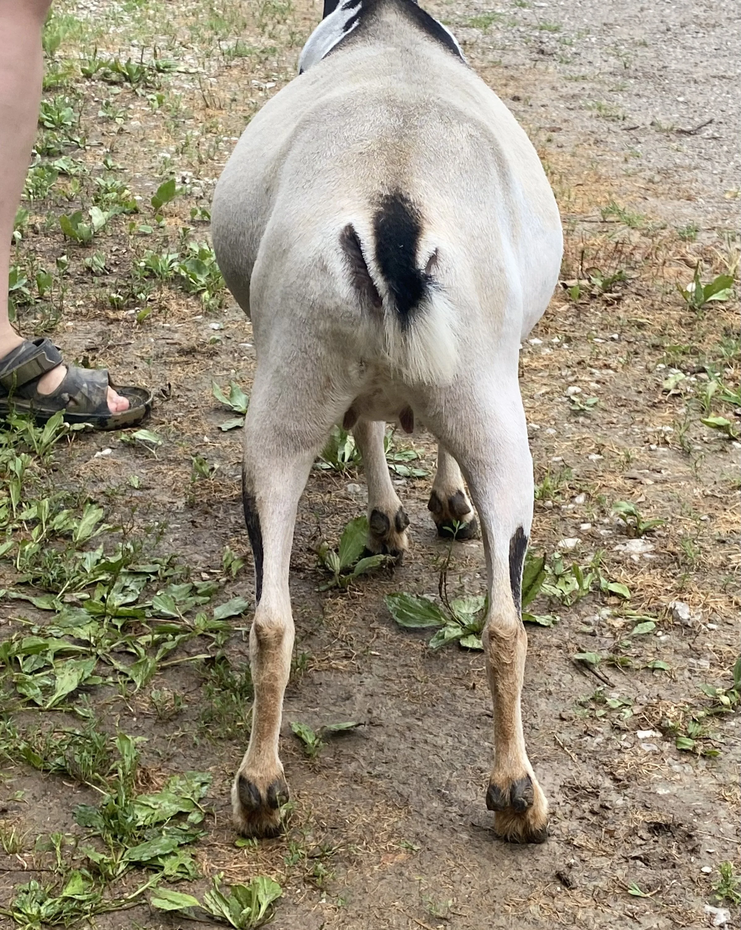 Sire’s Sire: ELITE Sinai Thunder O Exodus +*B +*S (SG/Elite Oliver ++*B ++*S VG+89, VEV88, ADGA Elite Buck 2018-2019 x SG Kaapio Acres HH Redemption *M *DAR VEEE90 ADGA Elite Doe, ADGA & AGS Nat'l Top 10 Milk Awards, AGS Breed Leader 4x Record setting in Overall Score and Production (8.1#), 1380#)
