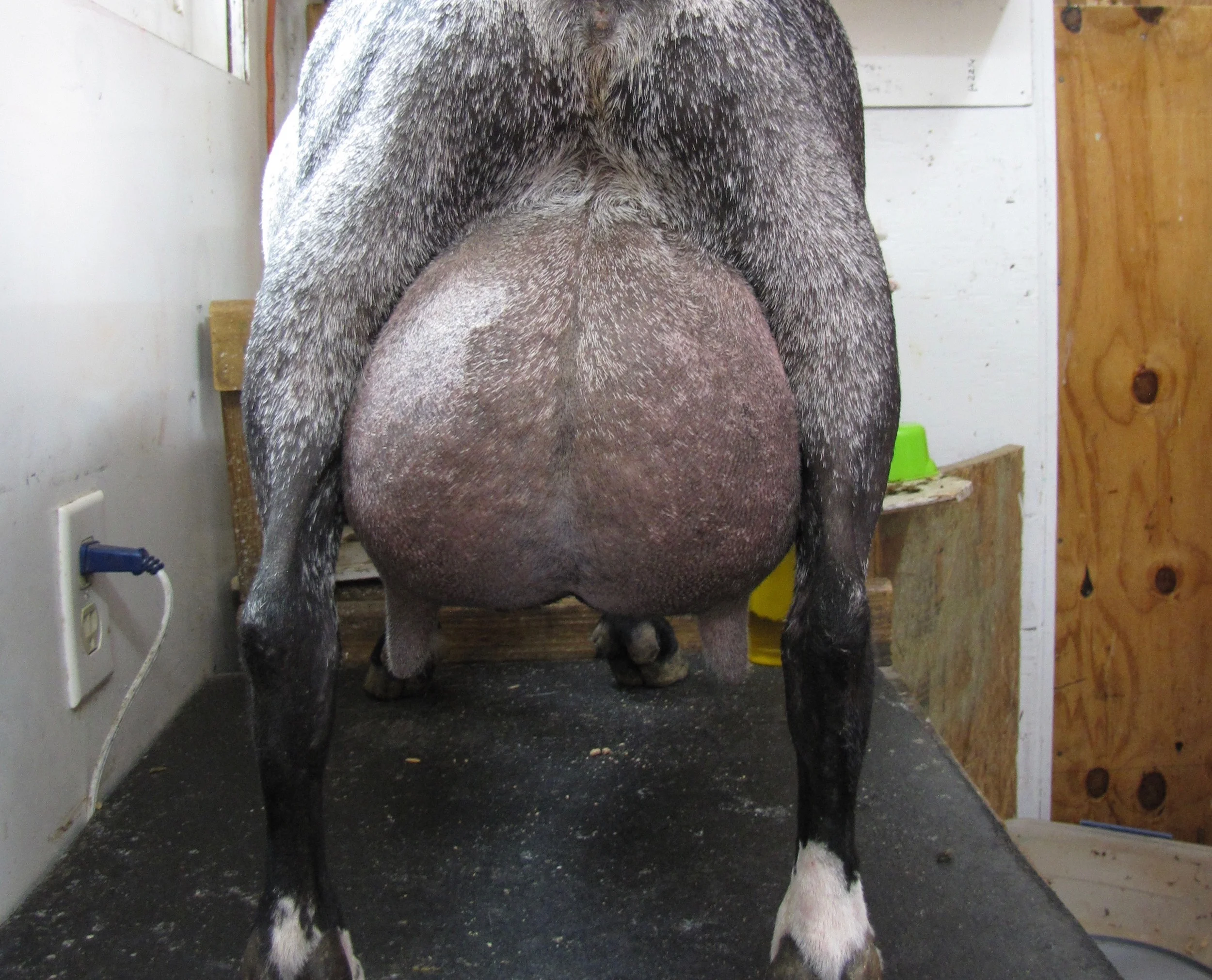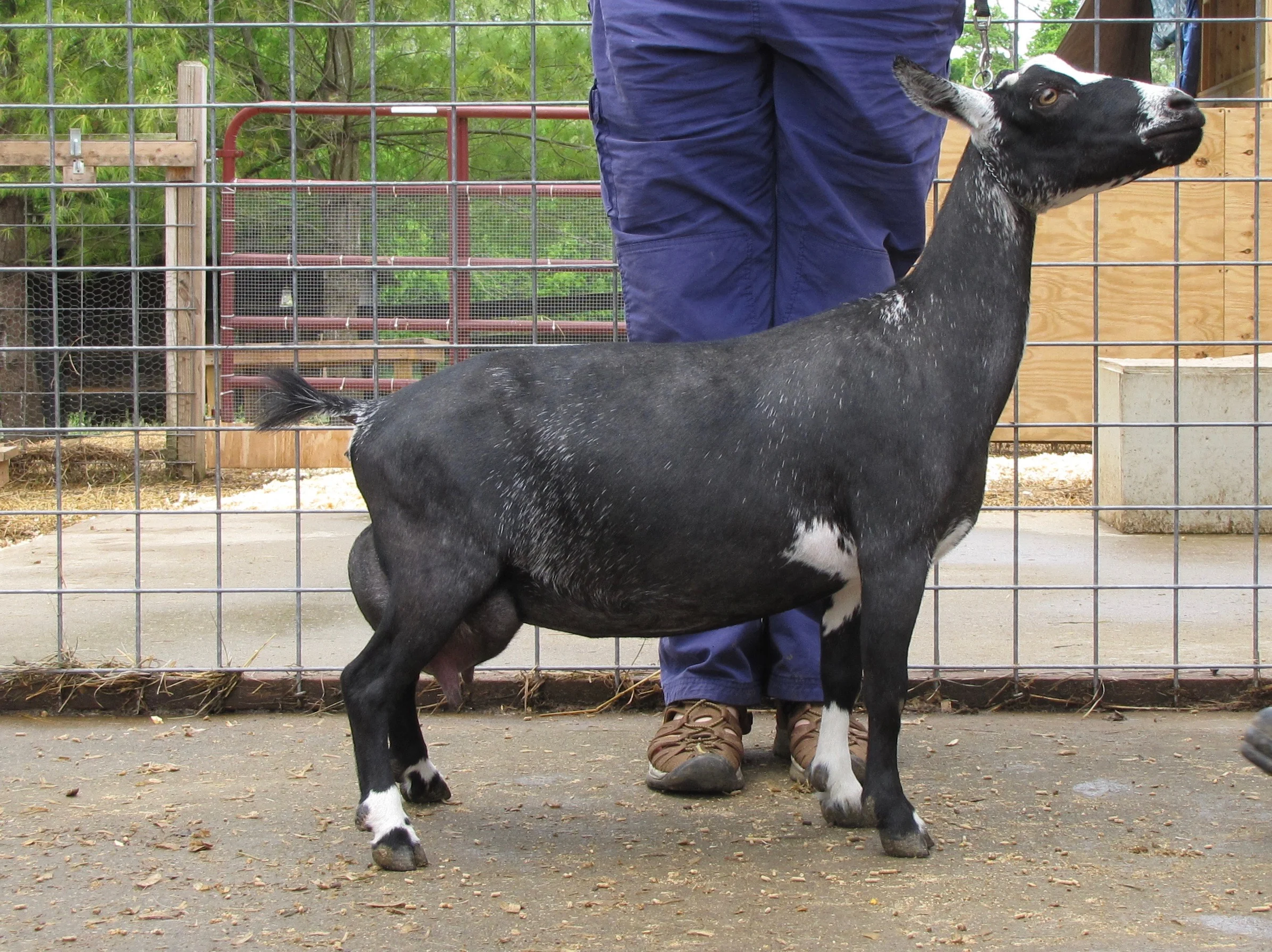 Selah is one of our cherished daughters of Ally. She's as sweet as her sisters and just as capacious. The Appraiser seemed to really like her---giving her an 88 as a First Freshener---which, we were thrilled with her score. Like her dam, Selah earned an E for Rump and a 35 for Rump Width. Pretty impressive for a doe of her size and something we feel this industry needs.